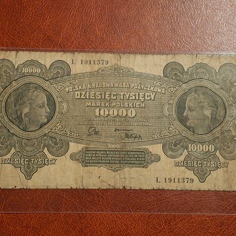 Polsk stor Seddel fra 1922 , 10 000 Marek Polskich seddel mellom kriger