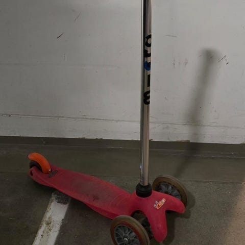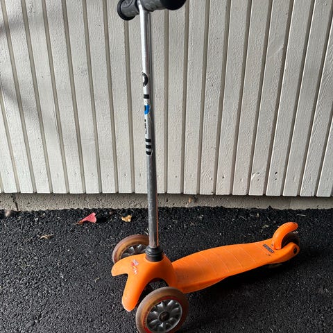 Lite og pent brukt sparkesykkel for de minste selges. Hel og pen. Med tre hjul for ekstra stabilitet. Brems med foten bak. Typisk barnets første sparkesykkel.