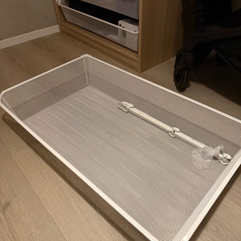 Trådkurv med lokk selges. Passer bra til oppbevaring, evt til pen oppbevaring av papiravfall eller lignende.