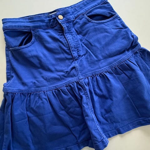 See By Chloe jeans denim skjørt med lær og broderi str 40