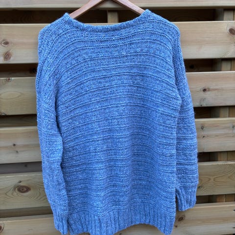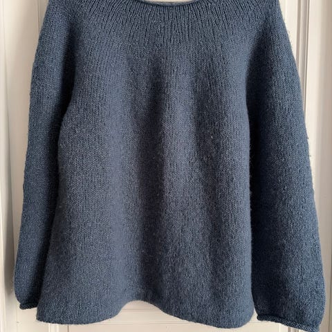 Genser strikket i mønsteret Kristianes høstgenser av Anett Opheim. Genseren er i fargen brent oransje fra Drops air.
