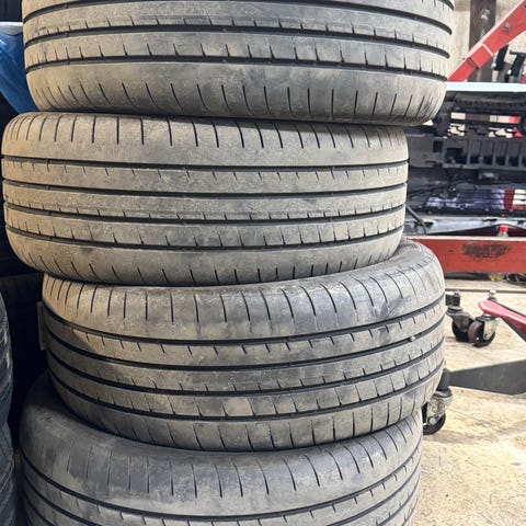 Sommerdekk Goodyear Eagle Asymetric5 235/45/ R17. Mønsterdybde 4-5 mm. Står veldig godt på våt asfalt.