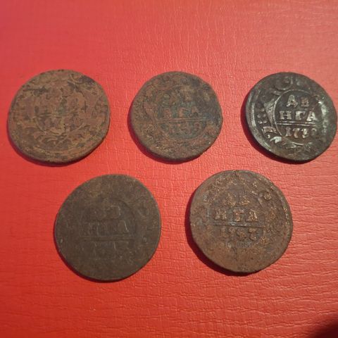 Gamle Mynter Russisk Empire 1 dengue fra år ca. 1737 - 1759