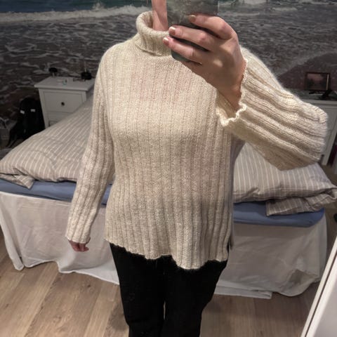 Genseren er størrelse L i følge oppskriften og den er ment å være litt oversized med ca. 25 cm i bevegelsevidde.