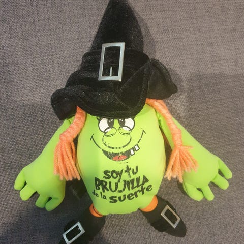 Håndlaget heksedukka, høyde 27 cm, pris 120 med inkludert porto