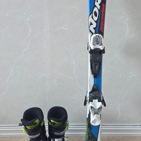 Brukte ski med bindinger og støvler