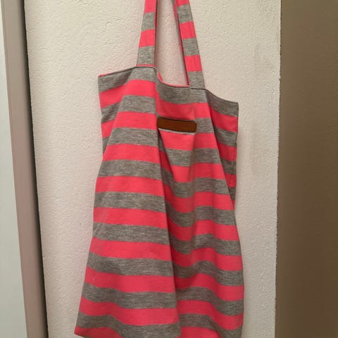 Selger søtt hvitt handlenett med røde og rosa blomster. Nettet er laget av 100% fairtrade sertifisert bomull.