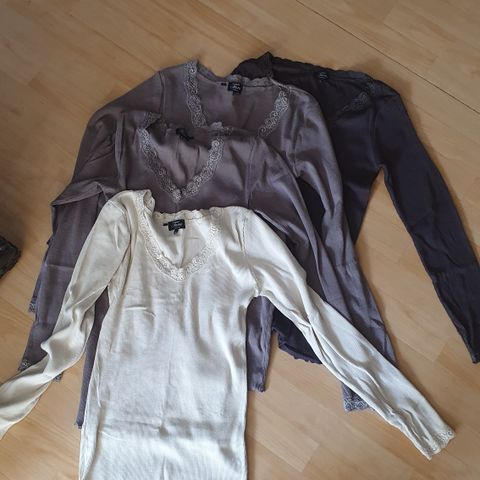 Pent brukt (eller ubrukt) topp med blonde rundt halsen og nede på ermene, ser ut som ny.