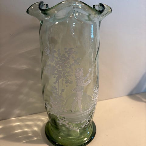 Antikk vase i Mary Gregory -stil. Hel og fin.