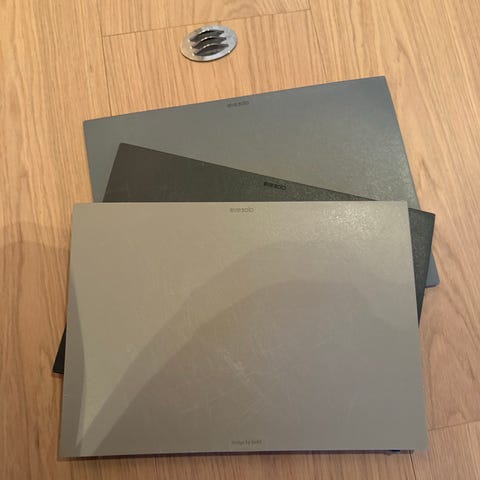 Settet med skjærebrett fra Eva Solo består av tre skjærebrett i hver sin fargenyanse og en plassbesparende holder. Disse fargenyansene gjør at du kan bruke skjærebrettene til forskjellige ting, f.eks. brød, grønnsaker og kjøtt/fisk/fjørfe. Skjærebrettene er enkle å gripe tak i takket være de avsmalnende hjørnene. Skjærebrettene kan stå og tørke i aluminiumsholderen adskilt fra hverandre. Dermed unngår du at det overføres bakterier mellom brettene. Brettene tåler oppvaskmaskin (max 65C). Holderen vaskes for hånd.