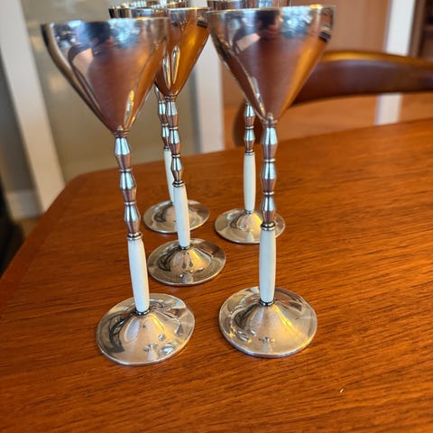 Art nouveau/jugend te holdere 6stk.med original krystall glass