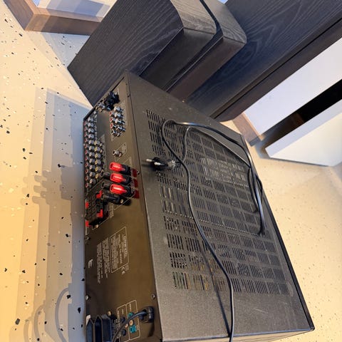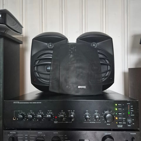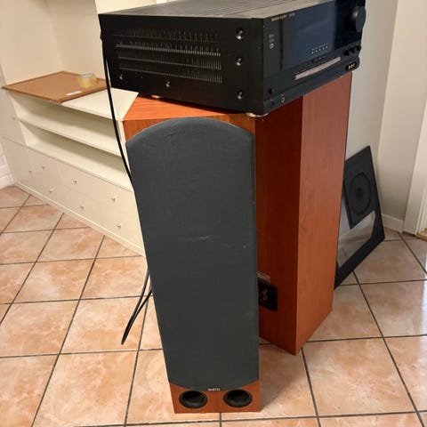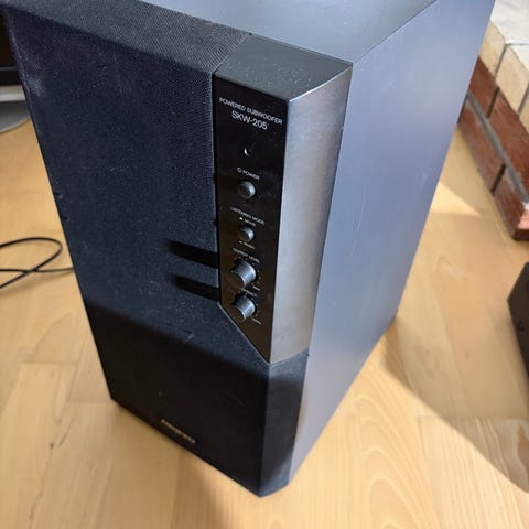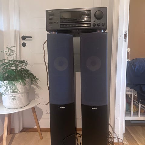 Flotte høytalere. Bra lyd, egentlig. Har ikke prøvd og rette på bulken, se bilde.. Kan teste ved henting av dem i Kongsberg. Evt byttes mot Denon Cd spiller til ala’ samme pris!!