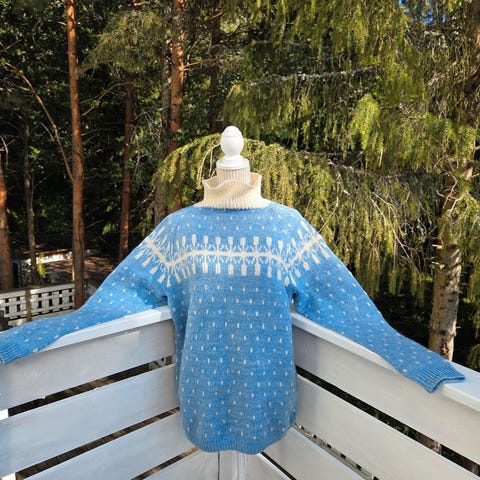 Godt brukt ullgenser med litt nupper. Var XL, men passer bedre M-L nå siden den har krypet litt i vaskemaskinen.