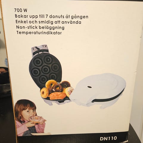 Nesten ikke brukt (kjøpt for å lage glutenfri donuts. Brukt kun 2 ganger. Tiden strakk ikke til). Som ny! Lager 7 donuts om gangen.