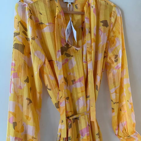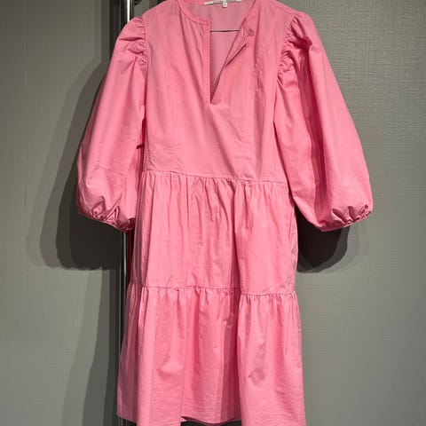 Nydelig sommerkjole fra Second Female i str M. Lys blå med hvite striper. Crispy bomullsfølelse i stoffet. Lommer i sidene. Ingen flekker eller skader, ser ny ut.