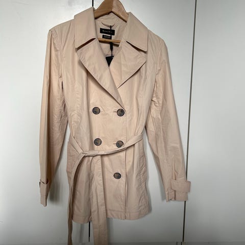 Selger en ubrukt kort trenchcoat fra Massimo Dutti. Den har en litt gulere beige-tone og gjør denne veldig fresh til vår og sommer.