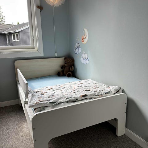 En 9 cm tykk og tredelt madrass fylt med trykkavlastende skum som følger kroppen og gir komfortabel støtte. Vokser med barnet ditt og den forlengbare senga – fra 130 til 165 eller 200 cm.