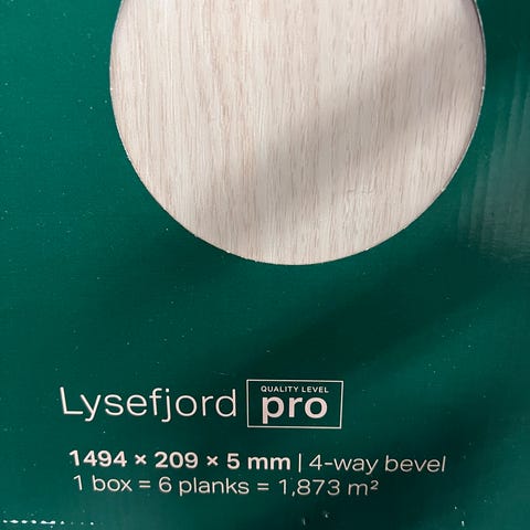 Har en pakke i rest etter oppussing. Pergo premium Vinyl gulv i fargen washed grey oak. 1,873m2. 6 planker. Helt uåpnet pakke. Vanntett, slitesterkt og lyddempende. Kan legges på varmekabler. Phtalat-fri.