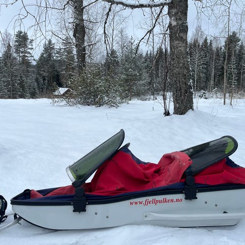 Fjellpulken søskenpulk/tvillingpulk selges, drag og sele inkludert