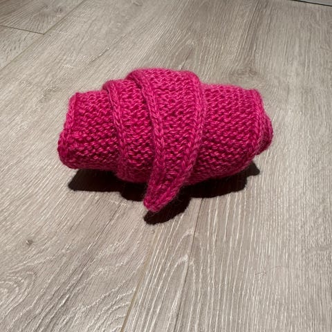 Går to ganger rundt halsen. Strikket i Skappel Suri (lamull/bomull).