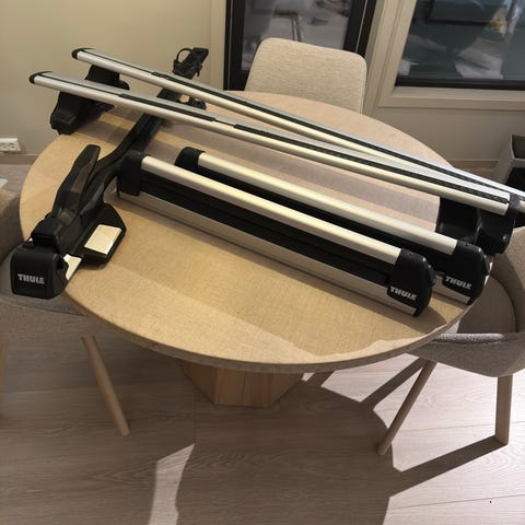 Thule sykkelstativ for montering på bilens tak. Selges da det ikke blir brukt. To nøkler medfølger.
