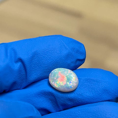 Solid opal, noe som betyr at opalen er helt naturlig og ikke satt sammen av flere forskjellige deler slik som mange kommersielle opaler ofte er, kalt doublets og triplets.