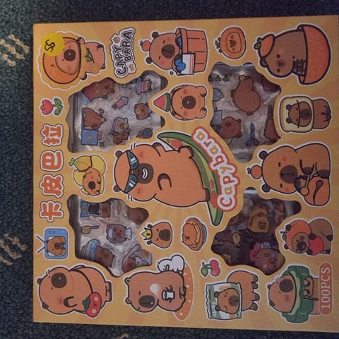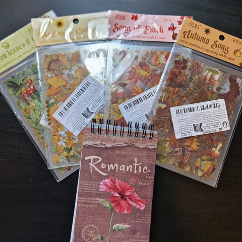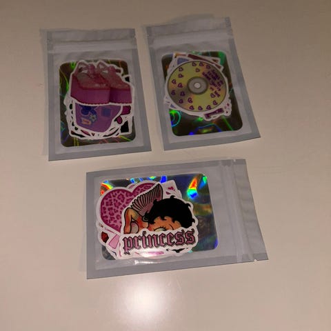 Diverse klistremerker, mye forskjellig, åpnet, uåpnet, bordpynt i gull og sølv, eldre Donald Duck bordkort. Eldre Ole Brumm invitasjoner.