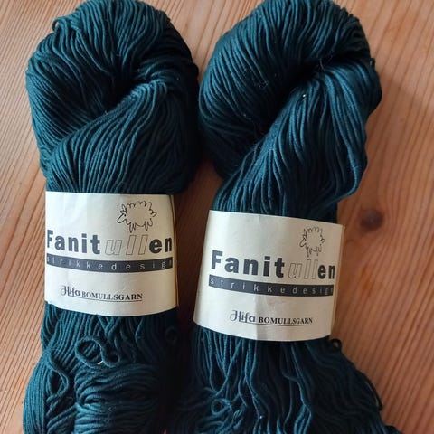 Fanitullen strikkedesign Bomullsgarn grønn,rustrød