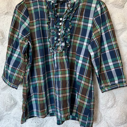 Pent, grå bluse i tynt stoff og flere lag. Lite brukt og med fine detaljer.