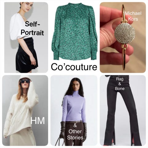 Cos, HM, Mapp, Tory Burch, Vavite, Mango, Burberry, Co’Couture, Reiss, Self Portrait