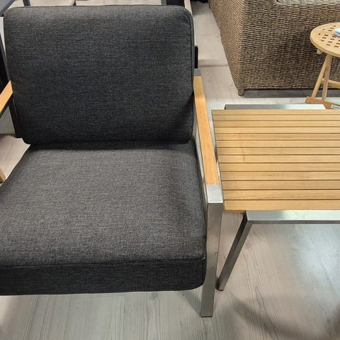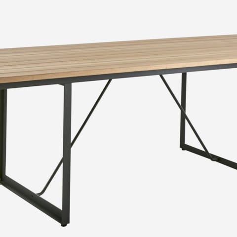 Hagebord Nolli i teak fra Brafab selges. Bordet har teakplate og sortlakkert understell i aluminium. Bordet har stått i et showroom og blitt brukt til fotografering én gang. Aldri stått ute, eller brukt privat.