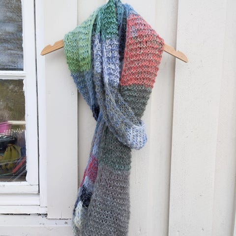 Hjemmestrikket skjerf, sjal laget med 100% alpakka.