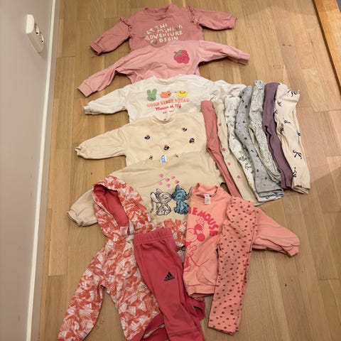 Pysjamas, kjole, bluse, bukse, body, genser.