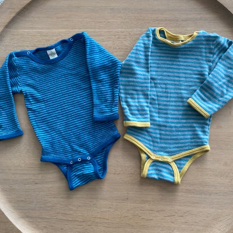 Krympa litt i vask så tilsvarer nå ca en str. 62.-68. Kan nok strekkes litt i vask.