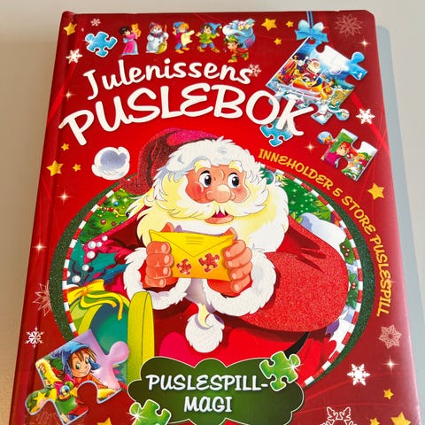 Morsom puslespillbok, pent brukt og kun ett av puslespillene som er tatt ut og lagt én gang. Totalt 5 puslespill, alle sider i boka er avbilda.