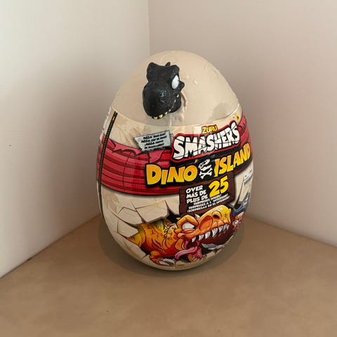 Pent brukt Smasher egg med diverse tilbehør. Ett stort egg og 4 små, alle kan monteres/demonteres. Alle deler unntatt sand og vått slim medfølger