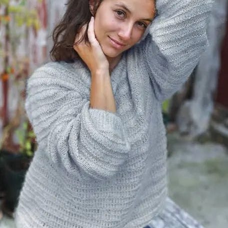 Hjemmestrikket genser. Strikket i dobbel tråd Drops Snow, så veldig varm og tykk. Dette var min første genser, så det vil være noen skjønnhetsfeil. Garnpris var 870kr. Selges til 300kr. Mål: 120cm overvidde, 69cm lengde og 43cm arm.