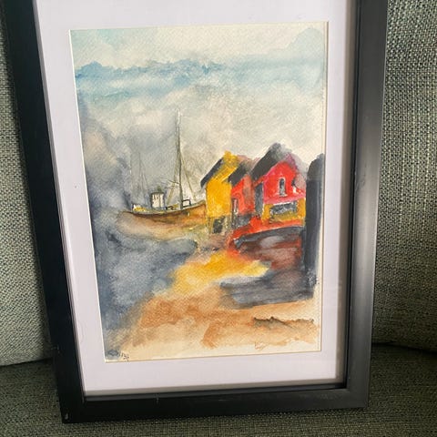 Dette er et bilde, dvs. ikke grafikk, størrelse 57 cm bredde og 47 cm høyde. Egner seg bra til for eksempel en hytte ved sjøen.