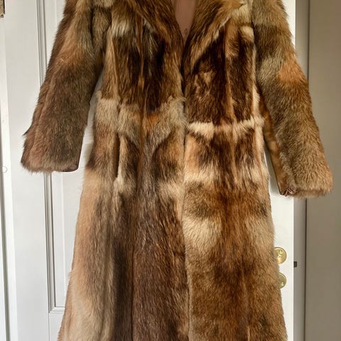 Meget pen lang revepelskåpe, fint mønster. I svært god stand, kun et lite rift i inner foret som kan sys.