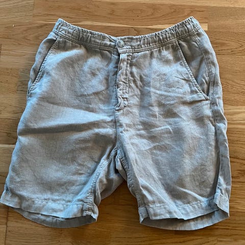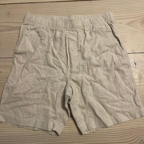 Beige linshorts fra Weekday. Størrelse L. Pent brukt.