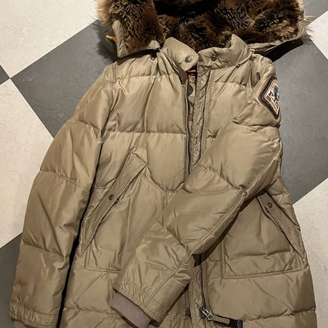 Hollies parkas kjøpt i 2017 for ca 5000,-. Godt, men pent brukt. Den har gått opp noe under armen(se bilde), men det har ikke hatt noe påvirkning på å holde på varmen. Kan lett syes eller limes med tekstil lim. Utgått modell med gulldetaljer på glidelåser og innsving i livet. Ekte pels av vaskebjørn som kan taes av. Nyvasket. Str 36.