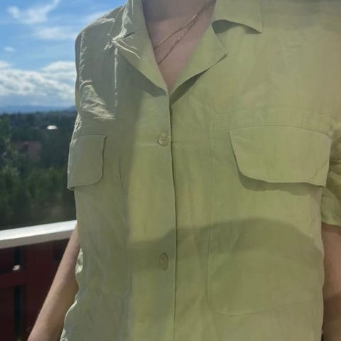Kortermet silkeskjorte.