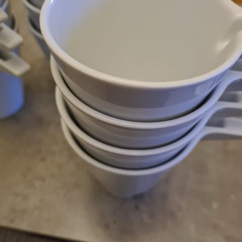 Blå og hvite kopper ( 4+ 4 like) selges samlet. Ingen riper, merker. Nesten ikke brukt. Kan sendes med PostNord til 69 kr eller med fiks ferdig .