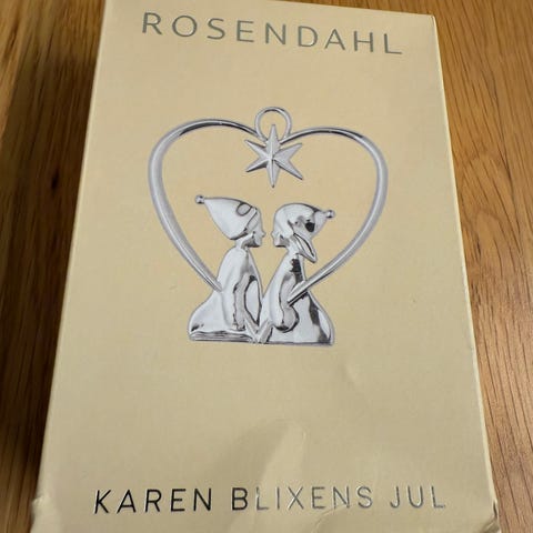 Helt ny og ubrukt Rosendahl Karen Blixen jul «Furutre», 7 cm i sølv med «diamant». Kun utgitt i Danmark som «Årets julepynt» i 2021, og har aldri vært i salg i Norge. Er derfor svært sjelden å få tak.
