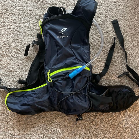 Camelbak ryggsekk med beholder for vann og "drikke slange" langs den ene reima.