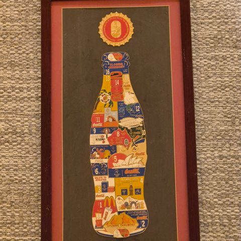 Sjeldent Coca-Cola pinssett utgitt i forbindelse med 1998 Australian Football League. Settet er nummerert 1323 av 1998. Store flotte pins. Selve settet er ca. 25.5 cm høyt. Innrammet i aluminiumsramme og glass. Utvendig mål på rammen er ca. 19x43 cm. Kan sendes med postnord for 69,-.