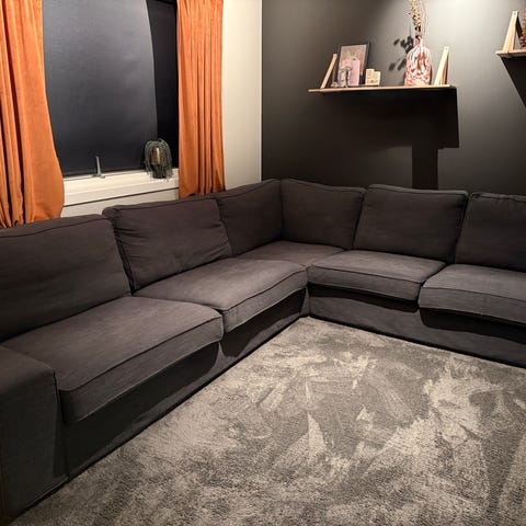 Pen skinnsofa med sjeselong fra skeidar.