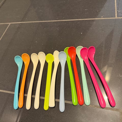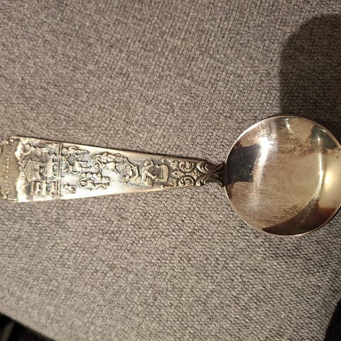 Selger Sølvplett barneskje . Den er merket med 60 og er ca 16 cm.