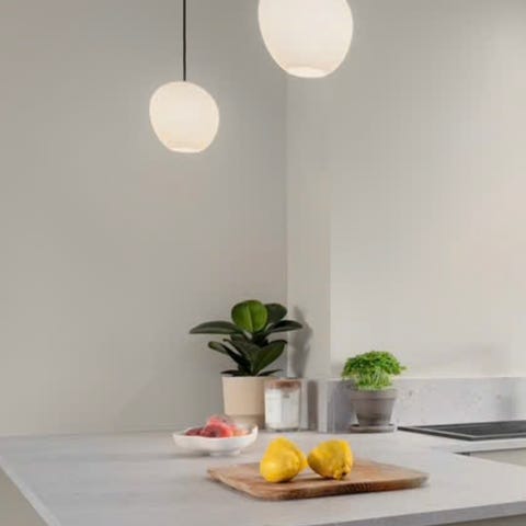 Aplomb mini pendant lamp. Luicidi & Pevere for Foscarini. 2 stk selges. Høyde 20 cm. Diameter 11.5 cm. Dimbare ledlamper. 2 500,- per stk.