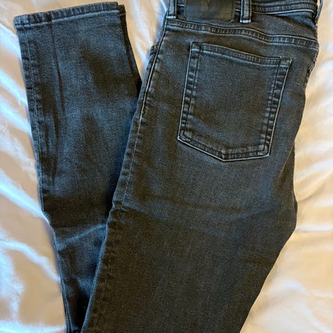 Skikkelig fine skinny jeans fra Acne. Opprinnelig str. 29/34, men lengden er kortere da profesjonell skredder har lagt opp buksa til meg som er 168 cm. Ingen skader eller bruksmerker. Fra dyre- og røykfritt hjem.